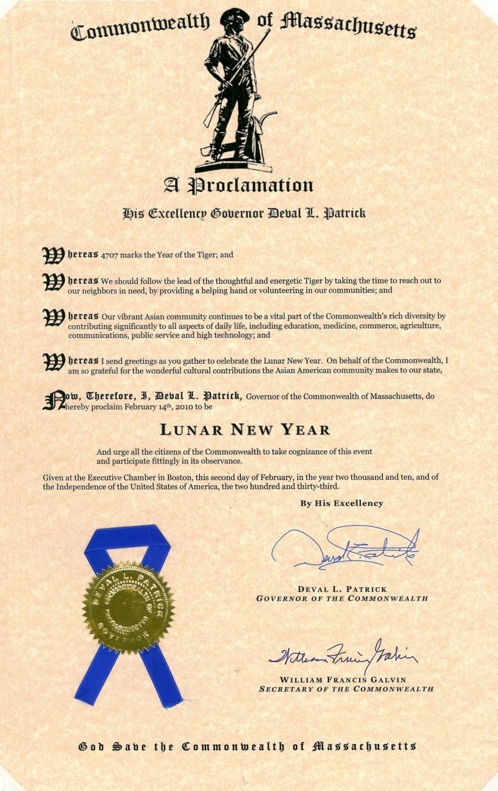 Massachusetts Governor Deval L. Patrick has sent a personal Lunar New Year greetings to Asian communities in the commonwealth. Click here to read it.